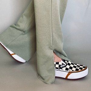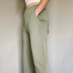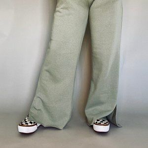 Ultra soft wide leg sweatpants with slit detail at the leg opening. There is no drawstring, but the waistband is elastic for optimum comfort.