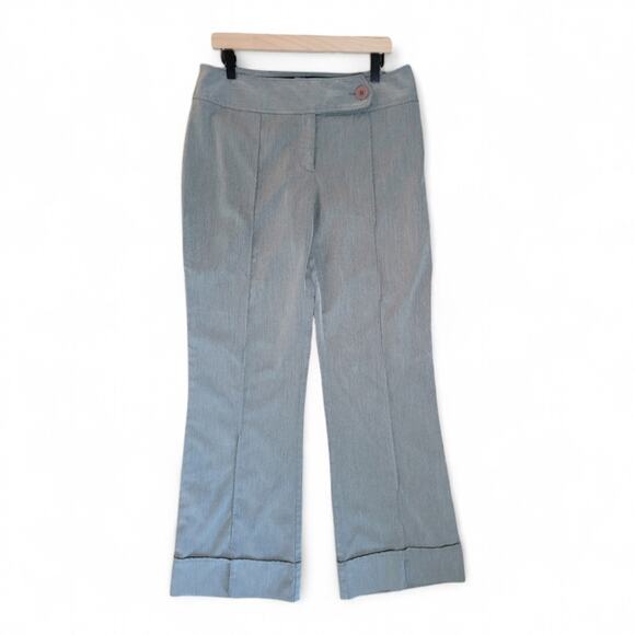 Wide Leg Y2K Pintuck Dress Pants Size 12 Gray Light Blue Pinstripe