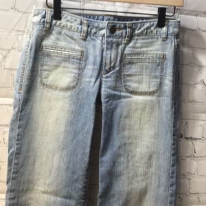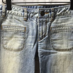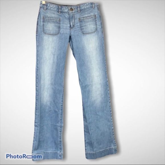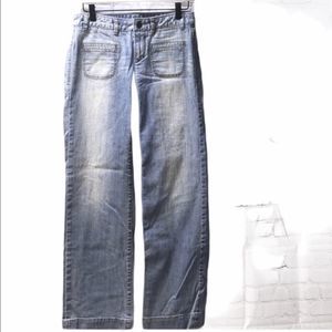 Pale blue with vintage fade featuring wide leg. These are size 0. They have been pre-owned washed and worn but in great condition. This is the denim look for this season. Boho Festival Trendy Denim See stock photo for fit **