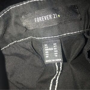 Wide Legged Black Overalls with Button Detail and White Stitching
