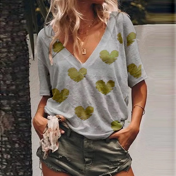 A half sleeve top with an exaggerated v-neckline and neon heart print. Brand new. Boutique.