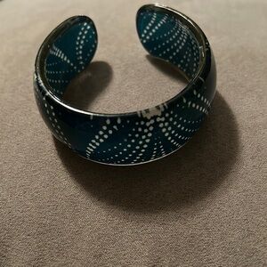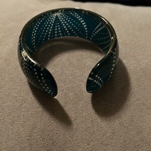 This plastic bangle bracelet is teal blue with a white dot design. It is in excellent pre-owned condition. #bangle #bracelet #plasticbracelet