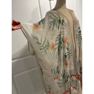 COVER UP: Flowy Light Material, Orange Ball Pattern On Hemline Open Front With Grey Trim
