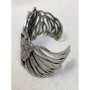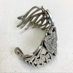 Wide Silver Butterfly On a Wing Cuff Bracelet- wide silver tone metal cuff - very gently worn, no flaws