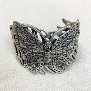 Wide Silver Butterfly On a Wing Cuff Bracelet