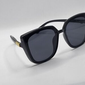 Wide Sunglasses Black with Gold Detailing | Materials: acrylic | Length: wide | Signed? no | Excellent vintage condition