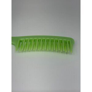 Durable green wide-tooth comb with handle, perfect for detangling wet or dry hair. Lightweight and easy to use for everyday styling.