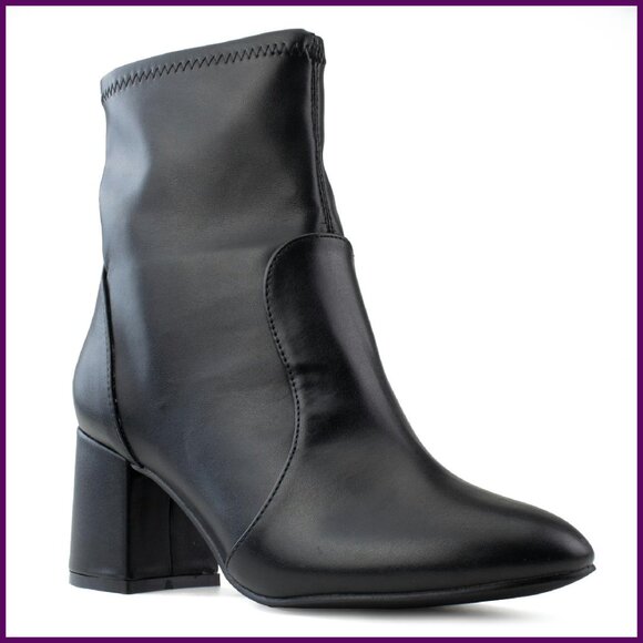 Wide Width Block Heel Ankle Boots - Plus Size Friendly Vegan Material