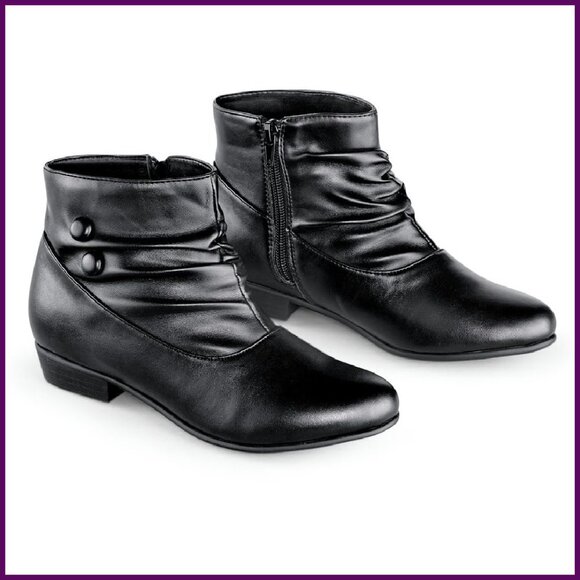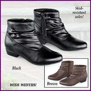 Wide Width Faux Leather Ankle Boots with Scrunch Design Size 10