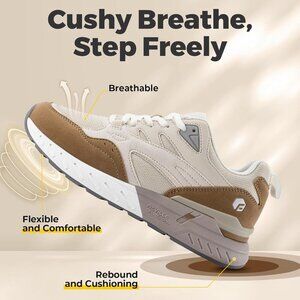 Features: Designed for wide feet, these sneakers have a wide toe and high-instep for toes freedom and pressure relief. Crafted with dual EVA cushioning for a perfect mix of bounce and support, plus contoured arch support and a U-shaped heel cup for stability. Outer material is soft suede with a durable rubber sole, ideal for all-day walking. Breathable design keeps feet fresh.