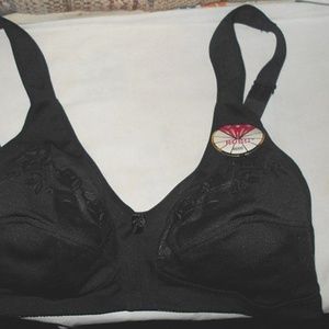 RUBII Black Bra Style Size 40DDD. 3 hook closure, wide adjustable straps. 80% nylon,20% spandex. This bra size to me runs on the small side. I have the same bra in tan/beige and white.