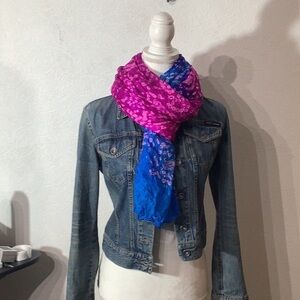 Wide and long crinkle scarf in beautiful Pink / Blue w/ a hole -not easily found