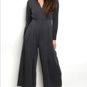 The boss lady jumpsuit will change up your regular dress pant and shirt look for work. It’s form fitting button down shirt and lose wide leg pant gives that elegant look. Pair with pointy black heels.