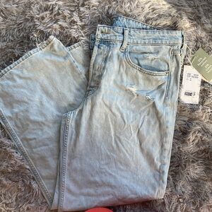 5-pocket jeans in rigid cotton denim that is softening and relaxing with wear. Loose fit from waist to hip and baggy fit from thigh to hem. Low waist and button fly. Wide, longer legs, designed to fall over foot with a stacking effect. A denim statement that goes the distance.
