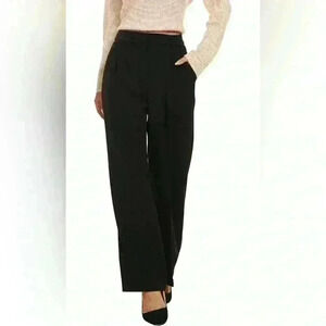 Wide leg pants, high elastic waist Black trousers - Long Straight, Size Large