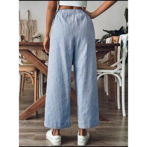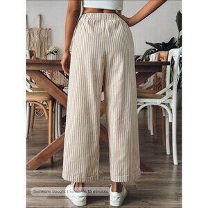 Wide leg striped boho pants drawstring tie waist white tan