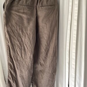 100% linen cropped pants- button fly, elastic waist and the ever so important pockets! A great summer basic that can be dressed up or down. Waist approx. 14” laying flat, inseam approx. 21.5”.