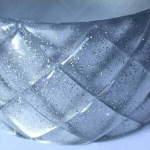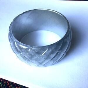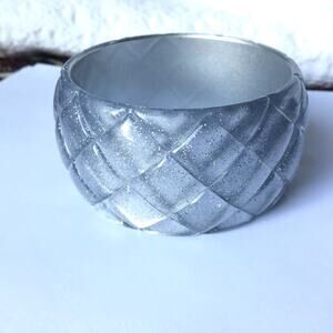 Wide silver plastic bangle bracelet - sparkles, 80s-style