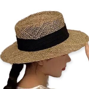 Unisex summer sun hat! Great black and natural white seagrass woven sustainable summer sun hat! Natural fibers great breathable warm weather hat, great sun protection. A round crown, stiff wide brim summer tropical boater hat!