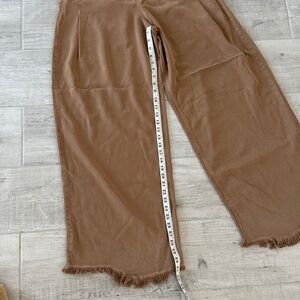 Wide-Leg Brown Frayed Hem Pants