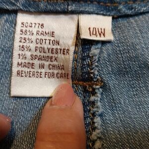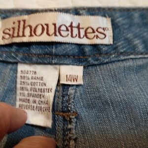 SILHOUETTES 14 W Stylish wide-leg denim . Perfect for casual outings.58% Ramie 25%cotton 15%polyester 1%Spandex