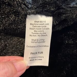 Widgeon Girls Black Super Soft Faux Fur Jacket with Sequins & Pockets - Size M