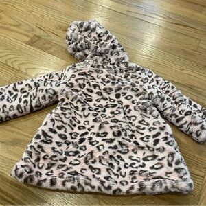 Stylish leopard print faux fur coat with a cozy hood. Perfect for adding a touch of wild elegance to any outfit.