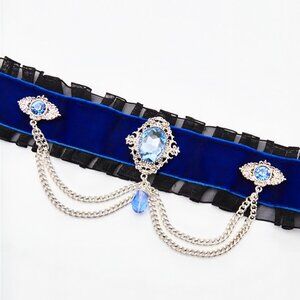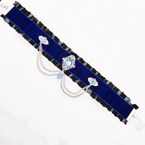 Widow ✦ Blue Velvet Victorian Choker ✦ Crystal Accents & Chain Details NWT