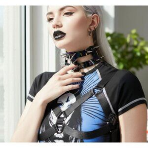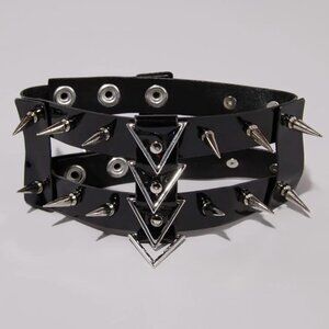 Style Tags: widow choker ✦ spiked choker ✦ vegan leather ✦ gothic accessory ✦ alt-core ✦ black ✦ silver ✦ NWT ✦ statement jewelry ✦ capsule layering