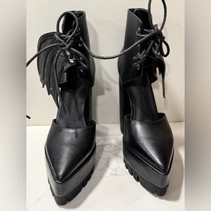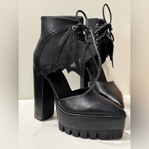 6” Platform bat wing heels! Lace up ankle size 7. In excellent condition. Spice up your shoe collection with these batty shoes!