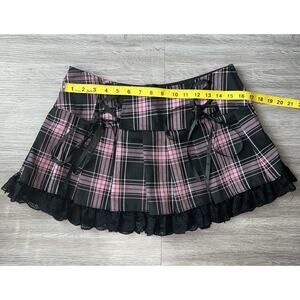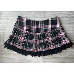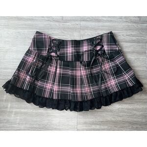 Widow Pink Plaid Corset Mini Skirt with Lace Trim – Gothic Punk Y2K Style Size M