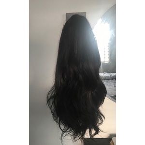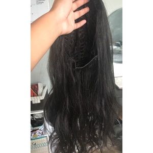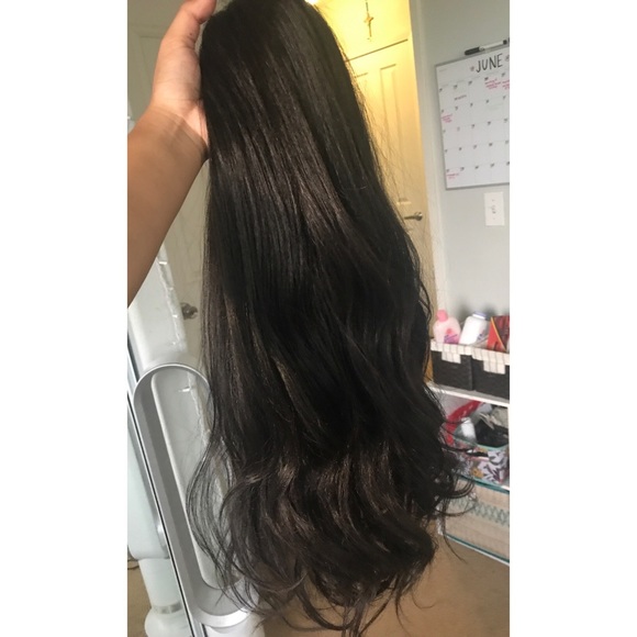 Beautiful half cap wig in dark brown! There are slight curls, making the hair look really natural. I used it ONLY ONCE, so it's still in perfect condition! Bought for $65