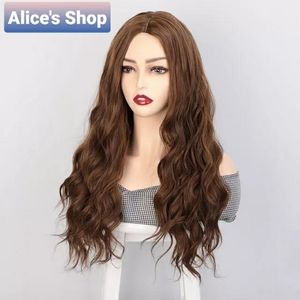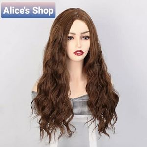 26 Inch Wavy Curly Brown Body Wave Synthetic Wigs Good Quality Like Real Hair