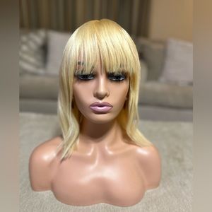 Color Short Pixie Cut Wig Short Bob With bang Non-Lace Human Hair Wig For Black Women Full Machine Brazilian Remy Hair Wigs 16 inches.