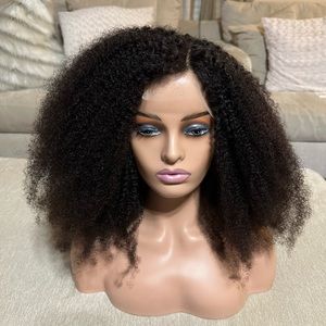 4C Afro Kinky Curly Lace Closure Human Virgin Hair Wigs Transparent Lace U Part Brazilian Lace Frontal Wigs for Black Women 250 Density 24inches