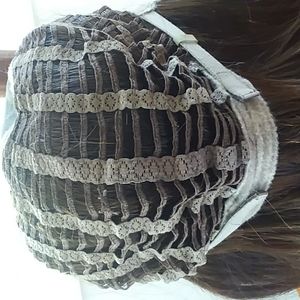 🫶🏻 Natural hair wig, lace front for natural appearance, shown parted on the left, but can be parted on right or center. Adjustable elastic band at base of neck for secure fit.