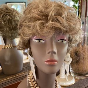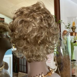Wavy curls , color 24-14, looks Ashe blonde with highlights.