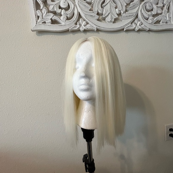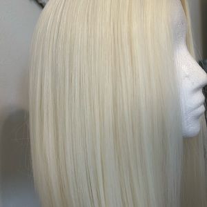 Never worn adjustable straps. Blended hair, can wash/style and can straighten/curl up to 350 degrees