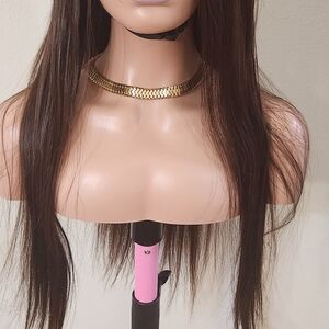 Sleek Vietnamese Raw hair wig. brown color, 22inches bone straight. 5x5 HD Lace Closure, size medium cap.
