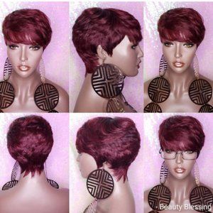 Wig Short Hair Cut Pixie Cut Peruvian Remy Human Hair Wigs Burgundy Wigs