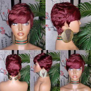 Short Hair Cut Pixie Cut Peruvian Remy Human Hair Wigs Burgundy Wigs