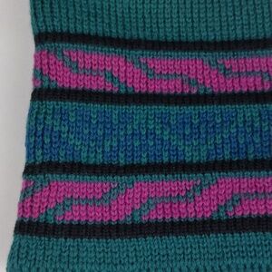 Stay warm with this 100 % wool knitted hat. Beautiful multi colors in teal, blue and fuccia. Perfect for any Winter outdoors activities.