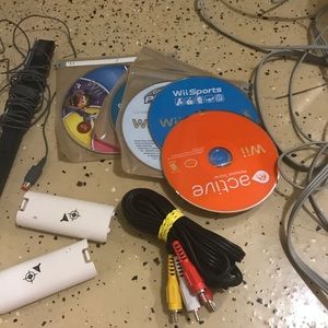 Wii unit with games and accessories. I just don’t have the remotes anymore. Easy enough to find some to go with it. This has a ton of tings with it however. Boxing gloves, two microphones, case holders and charging unit. Along with the wii and direction book and four games.