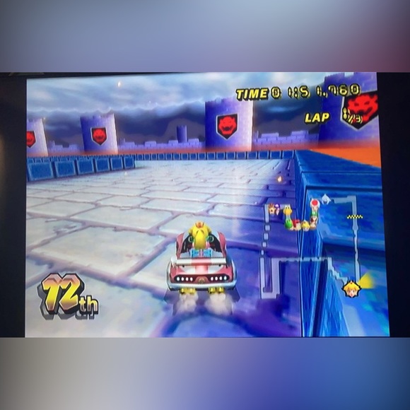 Wii console one Mario kart game (no game case) two Wii controllers one nunchuck and all the power cords av jack and sensor bar that go with the Wii everything in very good condition