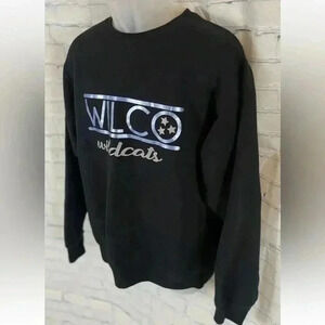 Wilco Wildcats Black Blue Pullover Crewneck Sweatshirt Woman’s Size M Cheer Cute