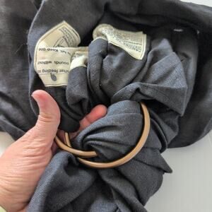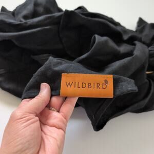 This Wild Bird baby is in like-new condition, never used! It features a sleek black color with elegant bronze rings. Made from high-quality linen with a length of 72 inches, it offers both comfort and style for you and your little one.
