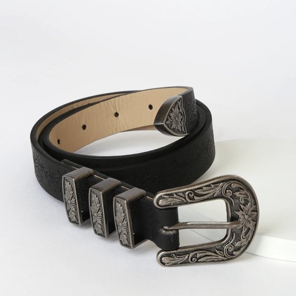 You'll be ready to go toe-to-toe with all the best boho babes when you've got the Lulus Wild Blooms Black Floral Embossed Belt! Floral-embossed faux leather shapes this trendy belt that has western-inspired embossed details at the buckle, keepers, and tip.