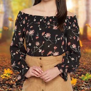Wild Blue SADIE ROBERTSON Women's Small Off Shoulder Floral Casual Top Blouse