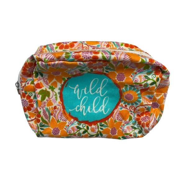Wild Child Floral Makeup Bag Bright Boho Travel Cosmetic Pouch Organizer Beauty