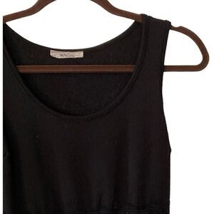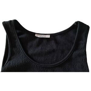 Pretty little black swing dress with mesh waist and textured material. There is no size tag so please use the measurements I’ve added: 15.5” P2P 12.5” at waist 31.5”. Good condition.